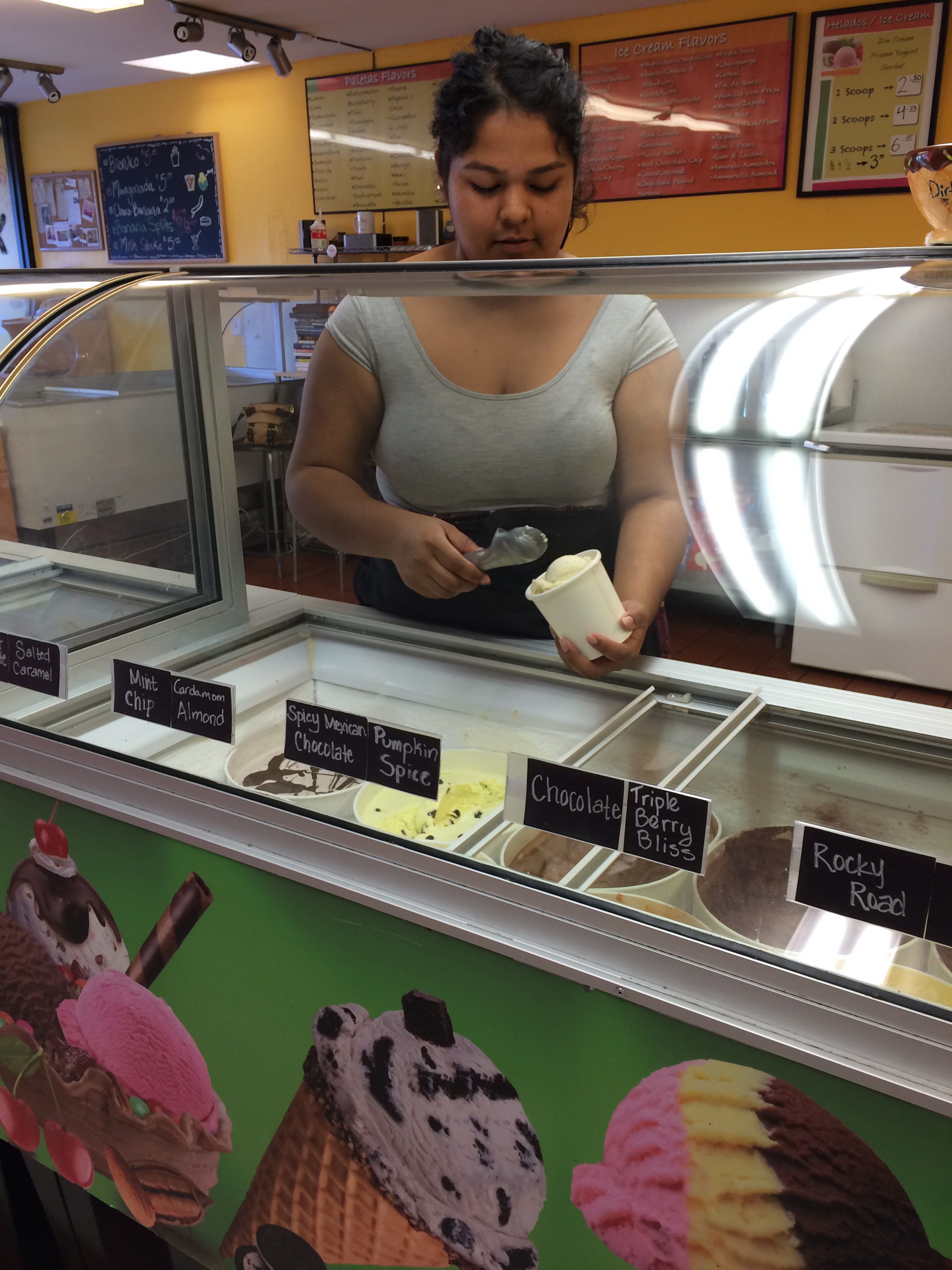 One person who can confirm that not one customer—nor his or her order—is (all) alike is Stephanie Avellaneda, who has worked at Frozen Art for two and a half years. “I’ve had a customer who comes in and orders a milkshake with corn and cheese in it,” said Avellaneda. She said she gets a lot of joy talking to people and having new customers come in to experience the ice cream. “I recently had some college students come in and one of the girls just came in and went towards the paletas (Spanish for popsicles) and was so happy. That made my day,” said Avellaneda.