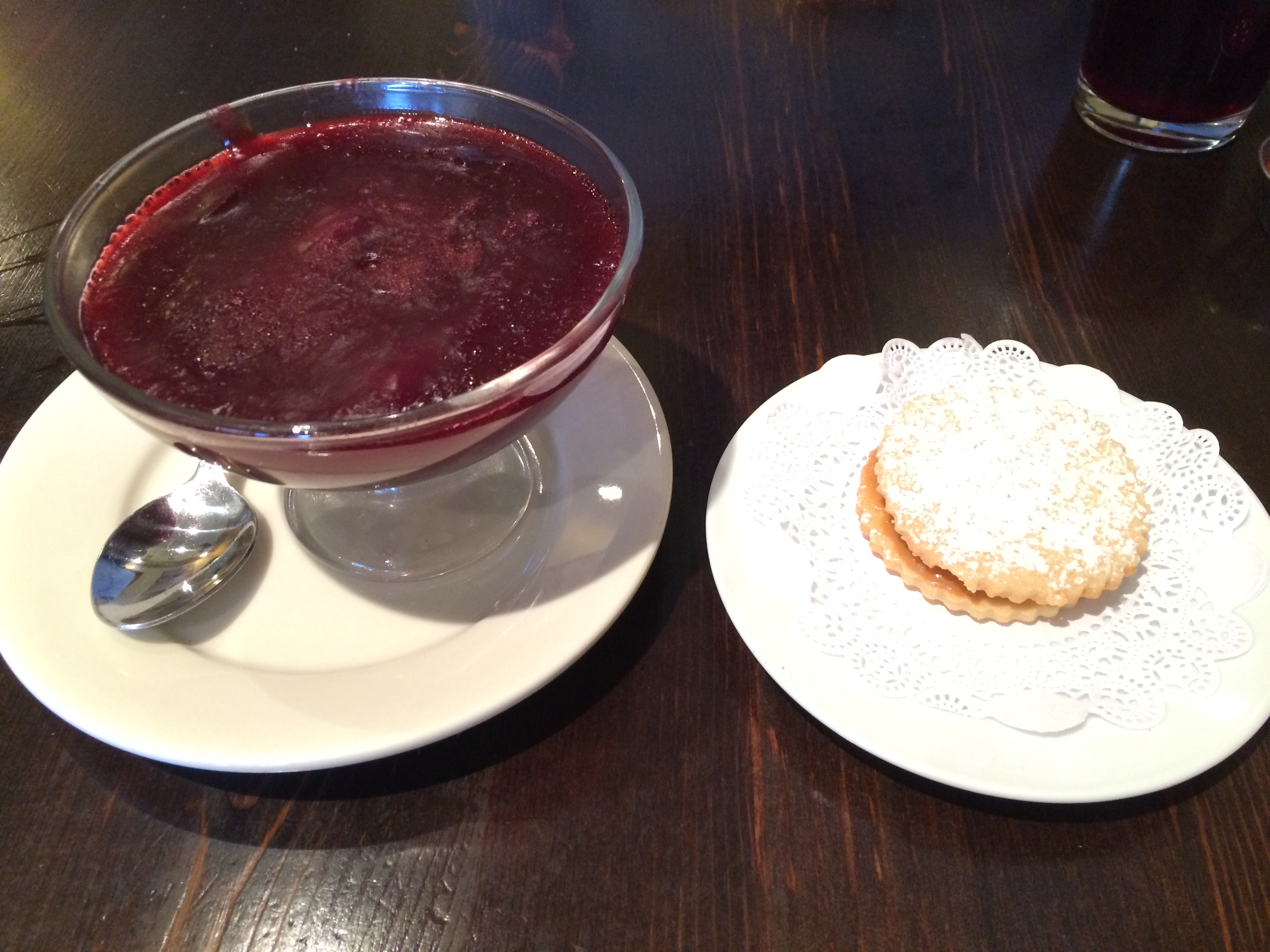 Dessert is served! From left to right: Mazamorra Morada and Alfajores, which are traditional Peruvian desserts. Photo: Jessie De La O